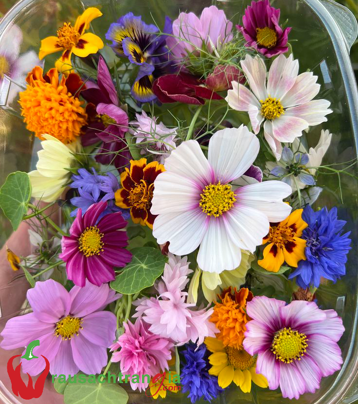 - Hỗ trợ tiêu hóa: Chất xơ trong hoa ăn được kích thích nhu động ruột, ngừa táo bón.